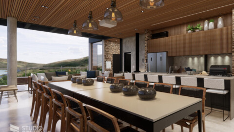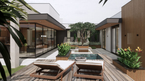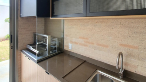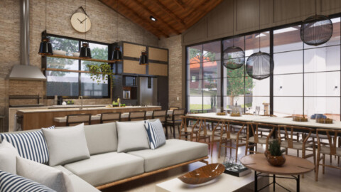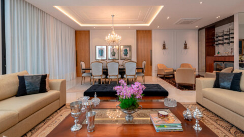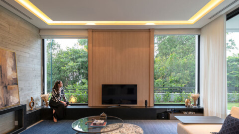 A residência é marcada pelo uso de madeira que aquece e tr...