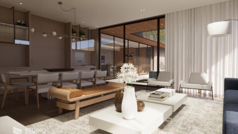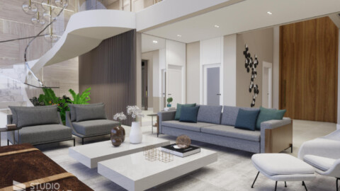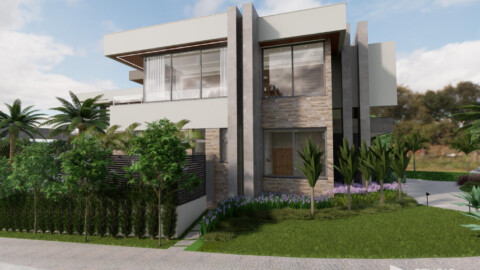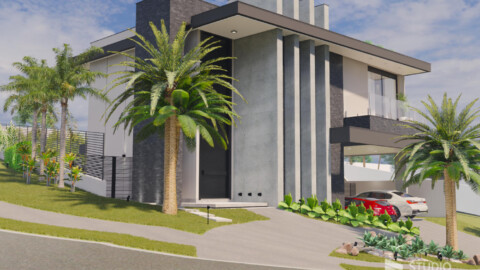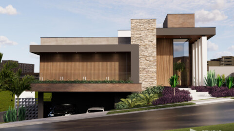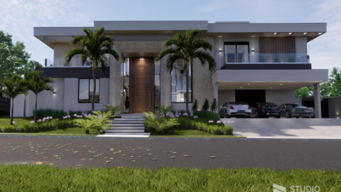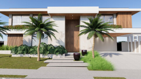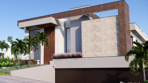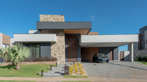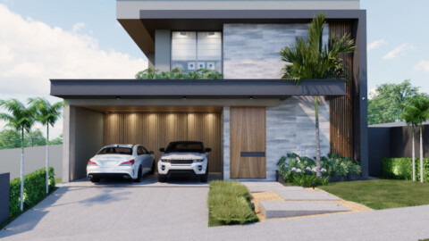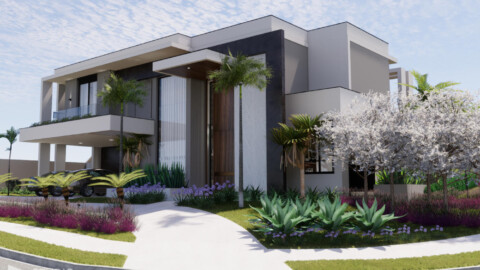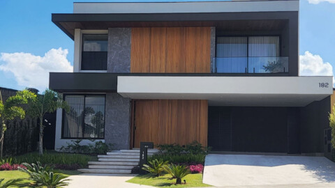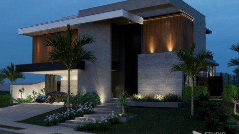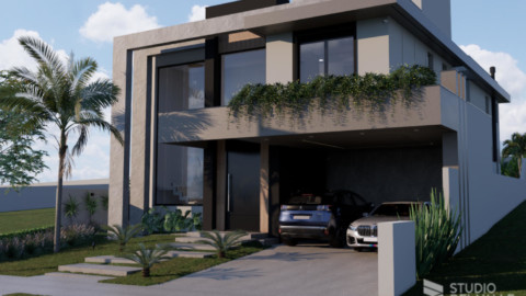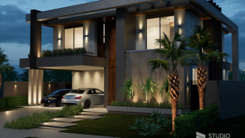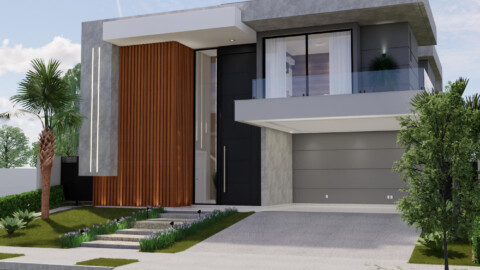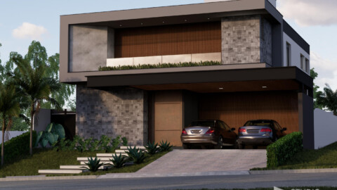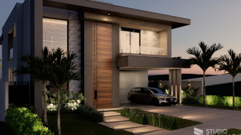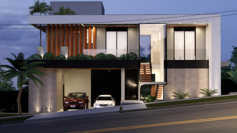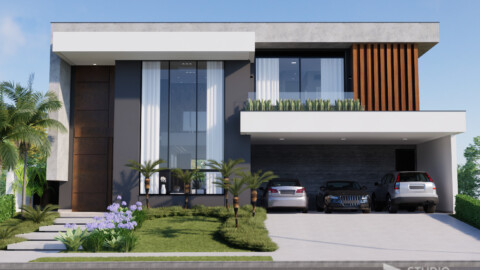 Sobrado Contemporâneo evidenciado por linhas retas e volume...