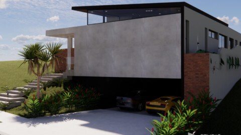 Sobrado Contemporâneo localizado em um terreno aclive, evid...