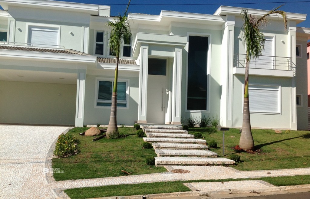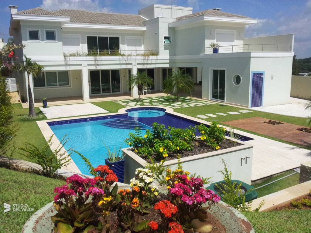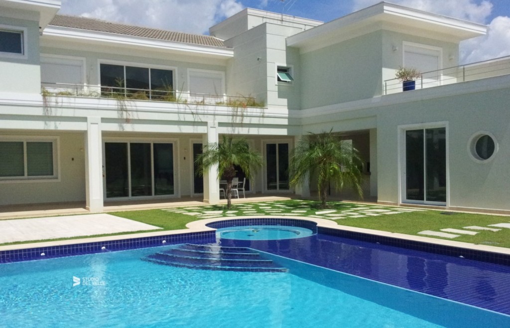O estilo contemporâneo combina com linhas modernas e molduras nesse projeto, com integração entre ambientes, pé direito duplo e tons claros. A área gourmet é equipada com forno de pizza e churrasqueira. A área de piscina tem grande destaque pela grandeza.