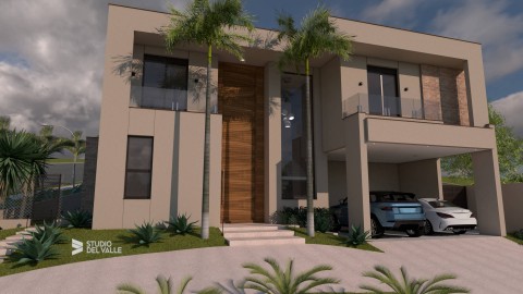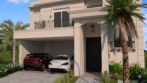 Sobrado em condomínio projetado em estilo neoclássico. O p...