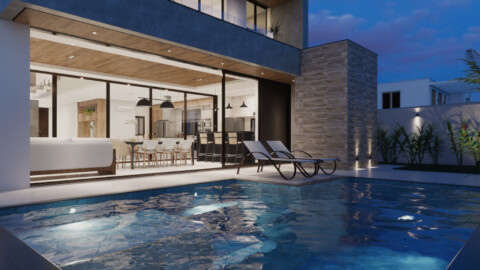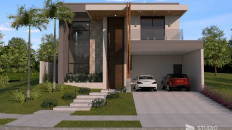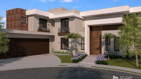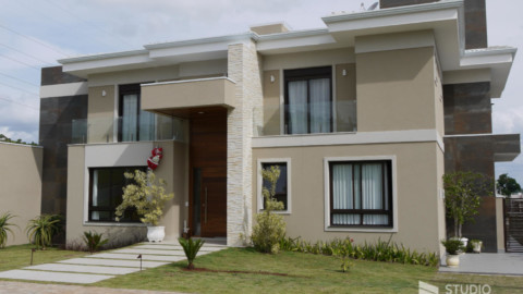 Sobrado contemporâneo com linhas retas e tons neutros. Os t...