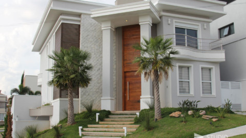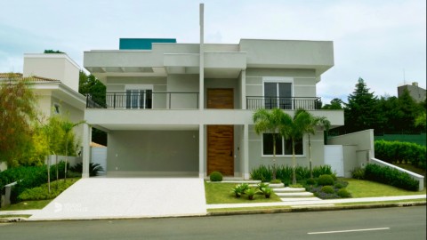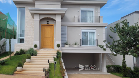 Sobrado neoclássico com linhas retas e volumetria da fachad...