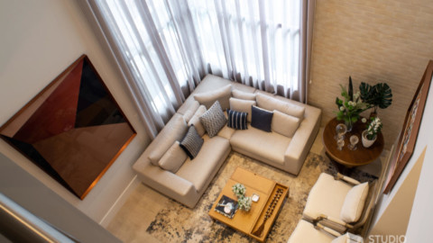 Descrição do Projeto Hall e living com pé direito duplo e...