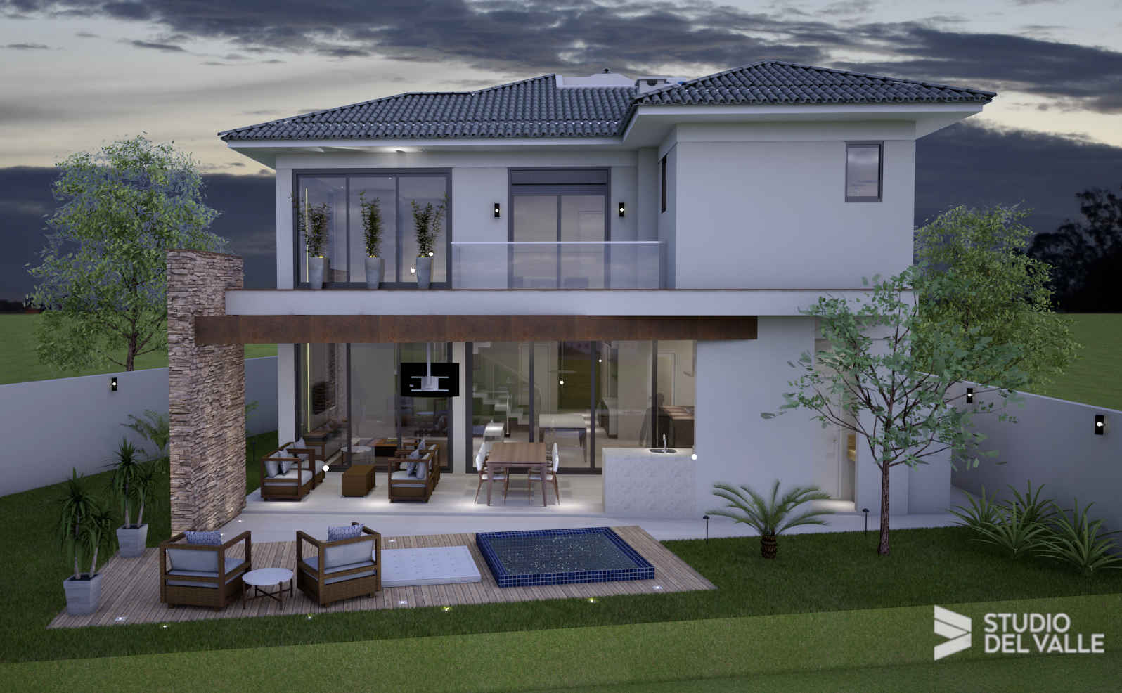 Studio del Valle, , 2017, Adega, Escada, Lareira, Pé-Direito duplo, Pedra, PiscinaSobrado contemporâneo com linhas retas, revestimento de pedras na fachada e porta de entrada em madeira com pé direito...