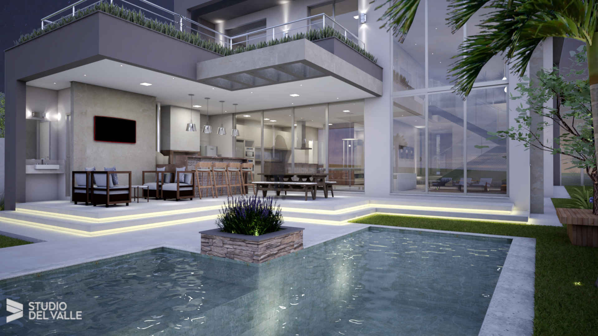 Studio del Valle, , 2017, Churrasqueira, Esquadria Preta, Esquina, Pé-Direito duplo, Spa, TérreaCasa moderna térrea em terreno de esquina com 4 metros de aclive. Porta de entrada marcada, esquadrias em preto,...