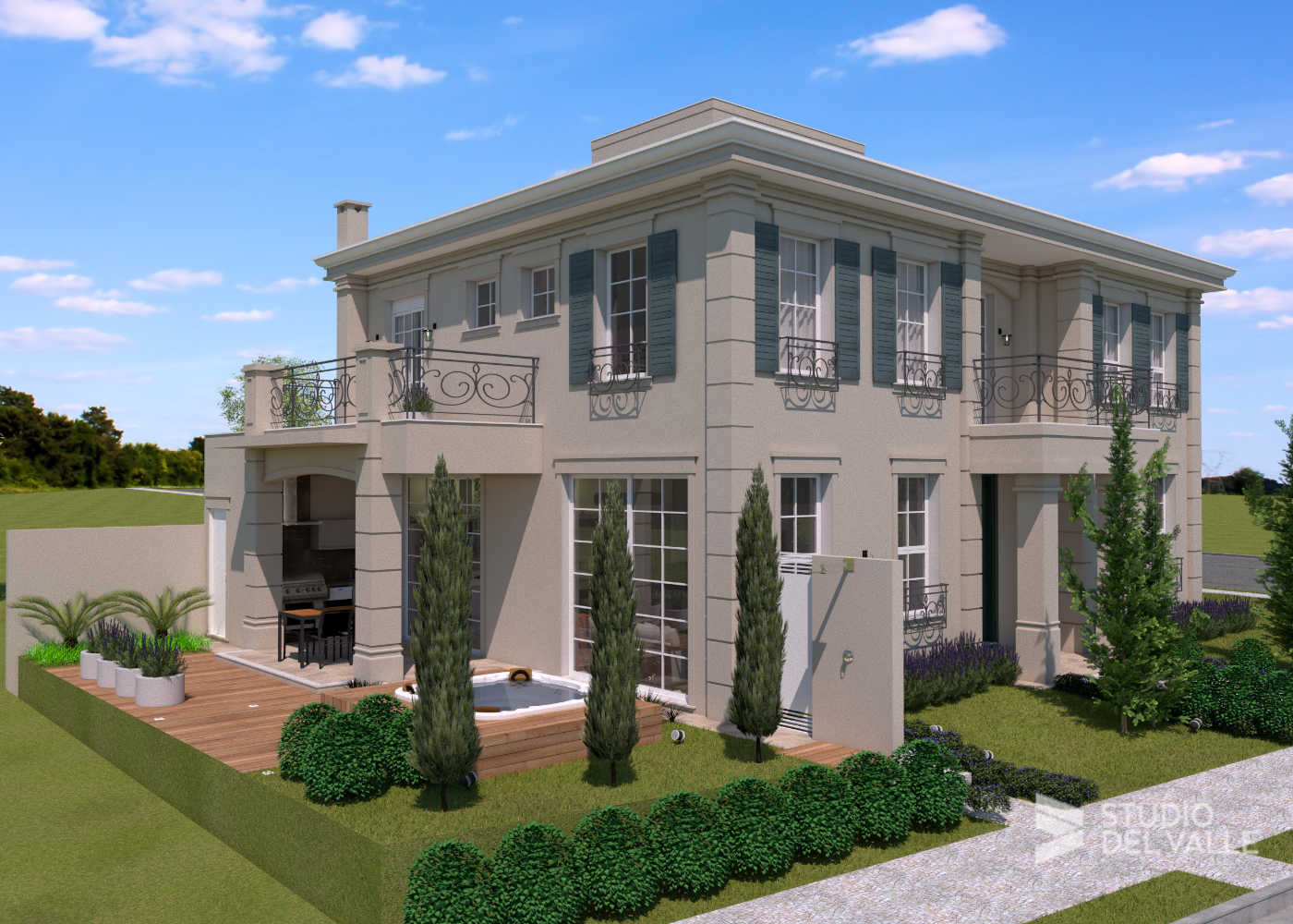 Studio del Valle, , 2018, Bay window, Canto alemão, Neoclássica, Pergolado, PiscinaResidência em estilo neoclássico em terreno com leve aclive. A única cor usada na fachada é discreta, mas contrasta...