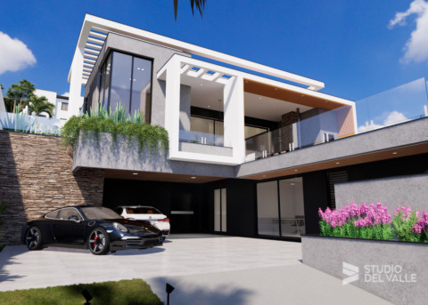 Sobrado contemporâneo localizado em um terreno em declive, evidenciado com suas linhas retas e revestimentos em pedra. Sua fachada...