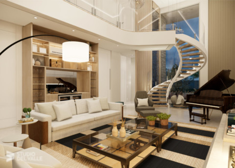 Estilo neoclássico evidenciado pela utilização de cores e materiais de tons neutros e claros nos ambientes. Grandes aberturas são...