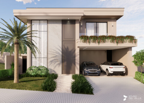 Sobrado neoclássico com linhas retas e volumetria marcante, evidenciada por um amplo pé-direito duplo em praticamente metade da residência....