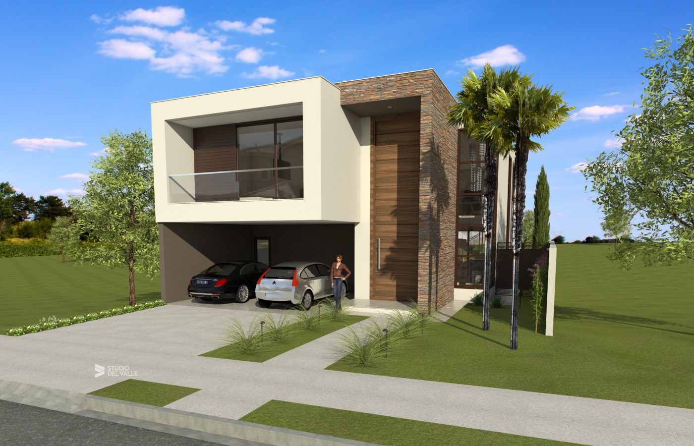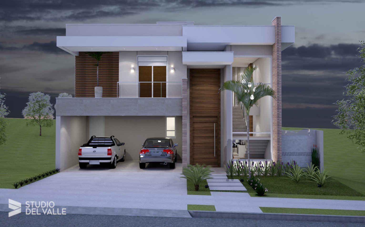Studio del Valle, , 2014, Linhas retas, Madeira, Moderna, Pé-Direito duplo, Pedra, Piscina, Portal, Spa, Terreno decliveSobrado moderno em terreno levemente em declive, com cores sóbrias e linhas retas. A porta de entrada descentralizada é...